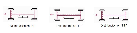 ● Distribución en HI: en este caso un circuito de freno actúa en los ejes delantero y trasero, mientras el otro sólo actúa en el eje delantero.